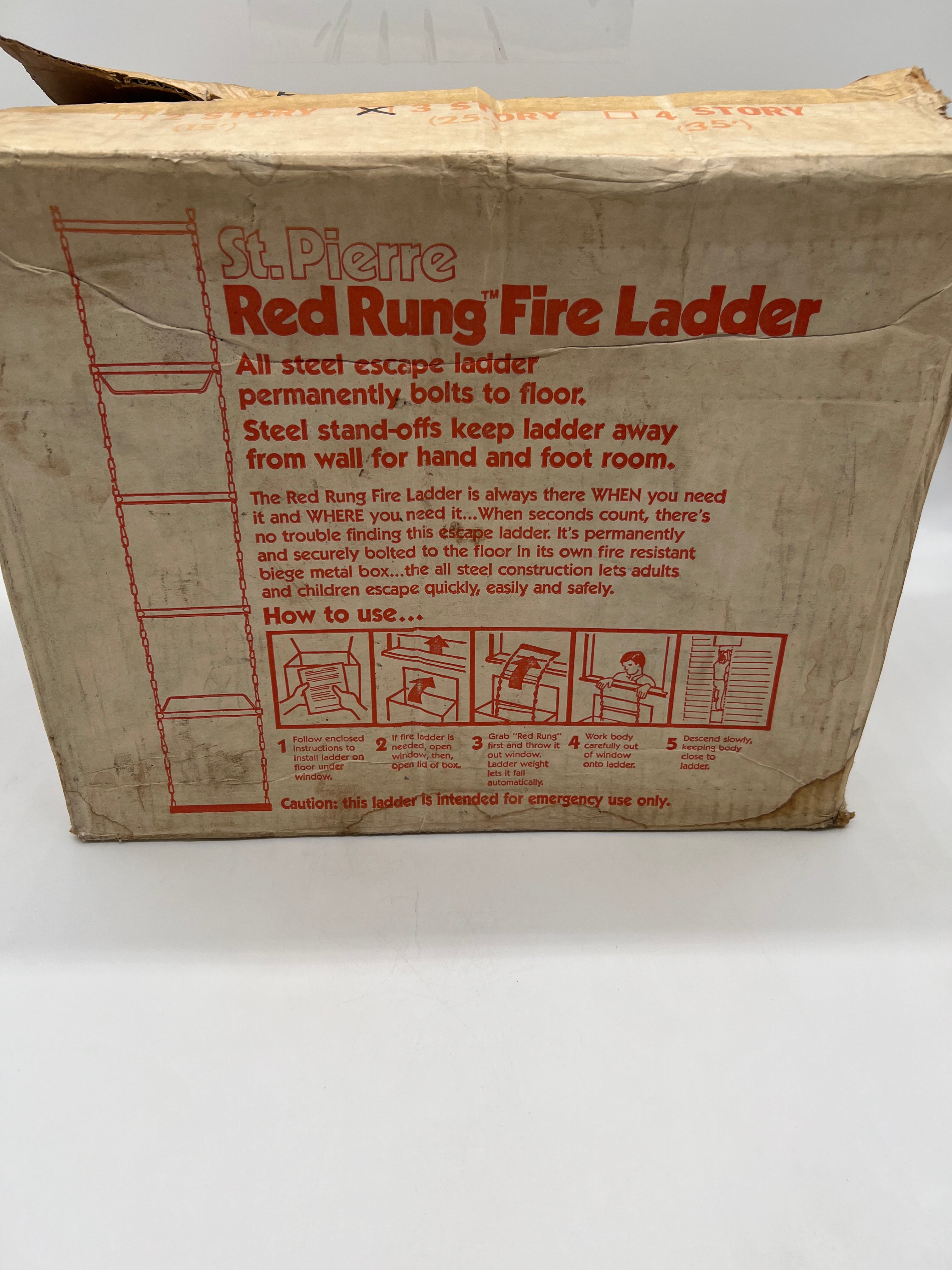 St. Pierre Manufacturing Corp. A-3 Red Rung 3 Story/25' Steel Escape Ladder, New-Open Box